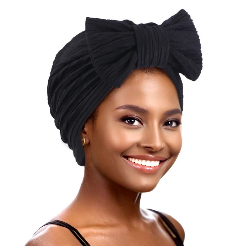 Stylish African Pleated Bowknot Turban Hat